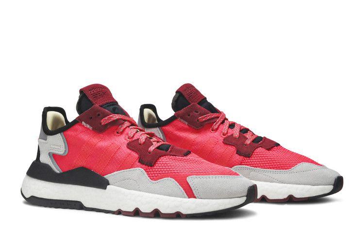 Модель adidas Nite Jogger, созданная для любителей бегать поздно вечером, была переиздана в 2019 году, получив архивный силуэт и светоотражающие элементы. Модель "Shock Red", созданная из сетки, нейлона и замши, получила яркий оттенок, который помогает ей выделяться и в дневное время. Светоотражающие детали расположены на носке, шнурках и пятке. Амортизация Boost по всей длине способствует сверхчувствительному шагу.