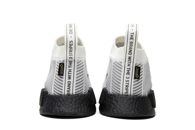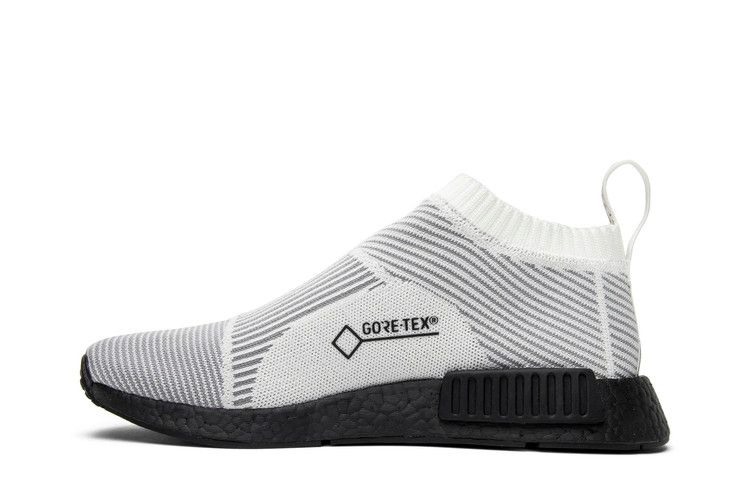 Модель NMD_CS1 Primeknit Gore-Tex сочетает в себе полностью водонепроницаемую подкладку Gore-Tex и бело-серый верх из материала Primeknit. Верхняя часть без лацканов располагается на полностью черной промежуточной подошве Boost с формованными заглушками EVA и черной резиновой подошвой, предназначенной для сцепления с поверхностью в непогоду.