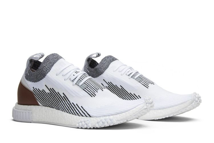 Группа Whitaker - зонтичная компания, которой принадлежат Social Status, A Ma Manéire, APB и Prosper, - объединилась с adidas для создания этой высококлассной модели NMD Racer в мае 2018 года. Модель выполнена из белого материала Primeknit с черными полосками и черно-белым меланжевым узором вокруг воротника, напоминающего носок. Модель также отличается коричневой кожаной панелью пятки и брендингом "Whitaker Car Club" на язычке пятки вместо привычного логотипа Three-Stripes. Под ногами у бегунов белая промежуточная подошва Boost, белая заглушка EVA в пятке и вставки Quickstrike на белой резиновой подошве.