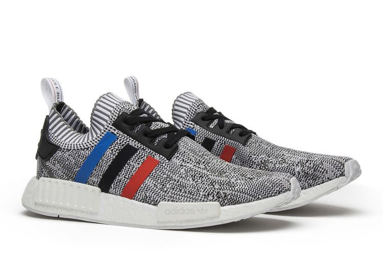 Знаковый логотип adidas с тремя полосками занимает центральное место в пакете NMD R1 "Tri-Color". Два варианта кроссовок ("белый" и "черный") были выпущены 26 декабря 2016 года. Белая версия NMD R1 'Tri-Color' имеет бело-черный глитч-камуфляжный дизайн и синюю, белую и красную трехполоску по бокам.