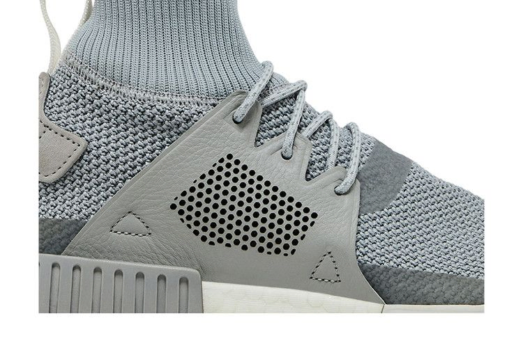 Зимние кроссовки adidas NMD_XR1 Winter Mid "Grey Two" обрели устойчивость к непогоде и утепленную подкладку. Верхняя часть из материала Primeknit имеет ребристый воротник, похожий на носок, и все это выполнено в цвете Grey Two. На среднюю часть стопы также нанесено водоотталкивающее покрытие, а на всю длину кроссовка опирается Boost контрастного белого цвета.