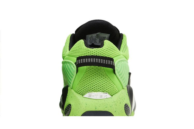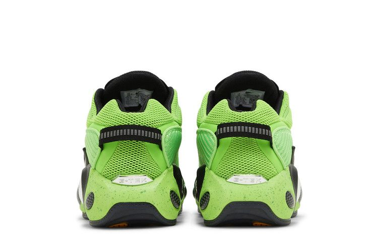 NOCTA x Nike Glide 'Slime Green' использует флуоресцентный оттенок дышащего сетчатого верха, наложенный на тональные тканые боковые панели по мотивам Air Zoom Flight 95. Дополнительный намек на винтажные кроссовки - уникальные детали в виде "пучеглаза", встроенные в пенопластовую межподошву с крапинками, а также тиснение "NOCTA" на овале с хромированной отделкой. Внутри кроссовка серебристые стельки с металлическим отливом украшены логотипами NOCTA и EYBL, которые отдают дань уважения Элитной молодежной баскетбольной лиге Nike.