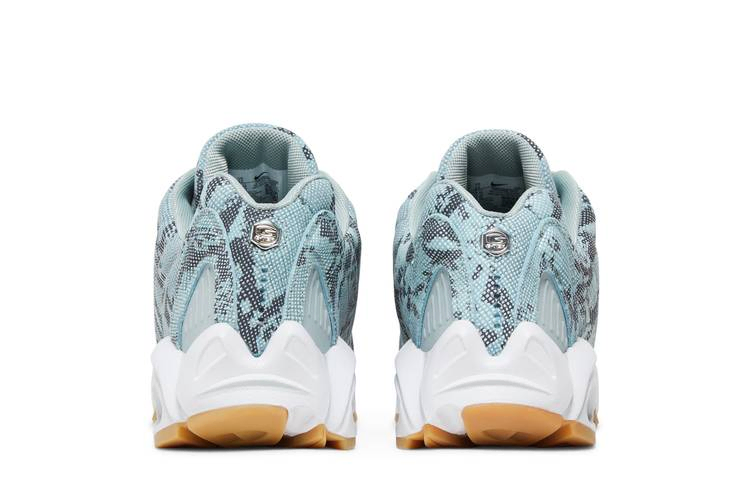 NOCTA x Nike Hot Step Air Terra "Light Pumice" - это модель из коллекции "Distant Regards Collection", в которой представлено трио цветовых решений, разработанных в партнерстве с суббрендом Nike Дрейка. Эта пара имеет верх из искусственной змеиной кожи бледно-голубого и серого цветов, акцентированный 3D-миниатюрами и светоотражающими вставками вокруг кончика глаза. Кроме того, перфорация овальной формы вдоль средней части стопы скрывает светоотражающую подложку. Кроссовки опираются на белую подошву из пеноматериала, позаимствованную у Air Terra Humara 99 года, оптимизированную с помощью амортизации Zoom Air в носочной части и видимого блока Max Air в пятке. Подошва из жевательной резины обеспечивает надежное сцепление с поверхностью.