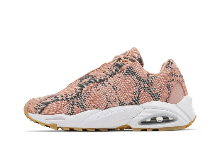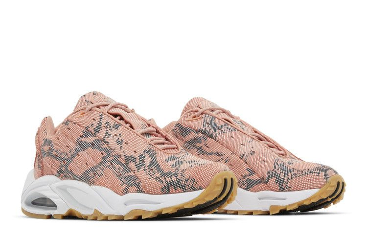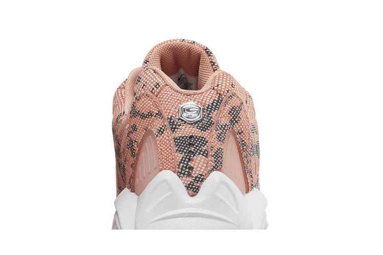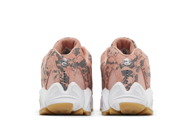 Модель NOCTA x Nike Hot Step Air Terra "Pink Quartz", выпущенная в рамках коллекции "Distant Regards Collection", обновляет силуэт в стиле ретро, придавая ему экзотический оттенок. Верх из искусственной змеиной кожи, выполненный в пастельно-розовом оттенке, украшен простроченными боковыми панелями и перфорацией овальной формы, сквозь которую видна светоотражающая подложка. Кроссовки опираются на скульптурную промежуточную подошву, позаимствованную у модели Humara '99, с амортизацией Zoom Air в носочной части и видимым блоком воздушной подошвы в пятке. Подошва из резины обеспечивает надежное сцепление с поверхностью.