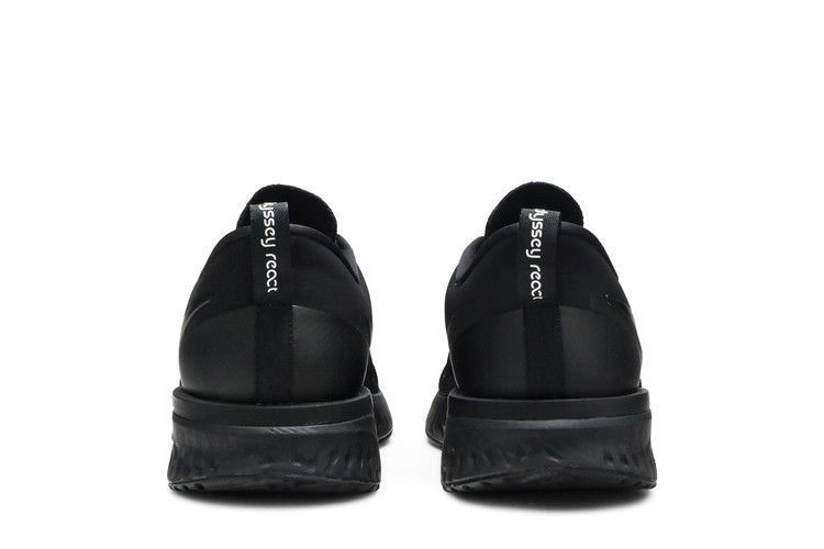 Прежде чем разработать технологию пены React, ставшую одной из самых знаковых инноваций бренда из Бивертона, компания Nike в течение многих лет анализировала биомеханику бегунов. Используя технологию теплового картирования и отзывы спортсменов, Nike смог определить, где необходима наибольшая амортизация. Силуэт Odyssey React 2 Flyknit 'Triple Black', представленный в январе 2019 года, выполнен в монохромной расцветке "черный на черном" и оснащен верхом из материала Flyknit и подошвой из вспененного материала React для максимальной эффективности бега.