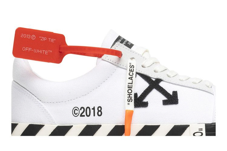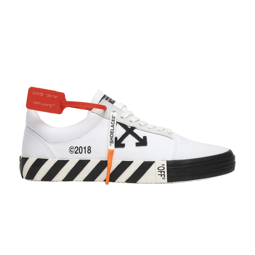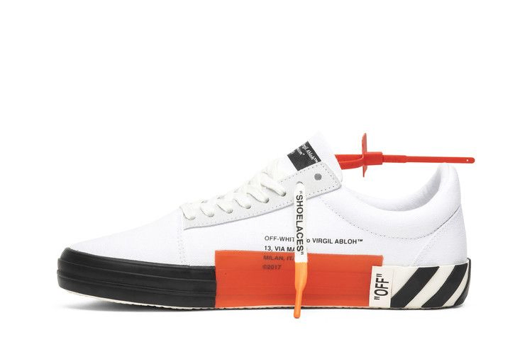 Вирджил Аблох, основатель люксового бренда мужской одежды Off-White, объединил итальянское мастерство с концептуальной уличной одеждой для создания желанных кроссовок Off-White Vulc Low Top 'White'. В пакете из пяти кроссовок, выпущенном в рамках осенне-зимней коллекции 2018 года, Аблох использовал фирменные элементы силуэта Vans Old Skool, вдохновленного скейтом, включая низкий верх, холщовый верх и подошву из вулканизированной резины. Аппликации со стрелками на боковине, диагональные полосы на средней подошве, оранжевая застежка-молния и надпись с описанием - все это придает обуви характерный вид Off-White.