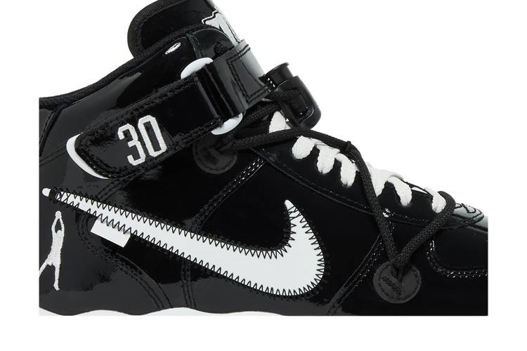 Модель Off-White x Nike Air Force 1 Mid SP Leather 'Sheed' вдохновлена моделью AF1 High PE Рашида Уоллеса 2001 года. Как и предыдущая модель, эта пара имеет верх из черной лакированной кожи с белым брендингом Swoosh, регулируемый ремешок на лодыжке и личный логотип Рашида, вышитый на боковой пятке. Фирменные элементы Off-White - двойная система шнуровки и печатный текст на медиальной стороне. Модель опирается на деформированную промежуточную подошву с малиновым оттенком Air в пятке и поддерживается шипованной резиновой подошвой.