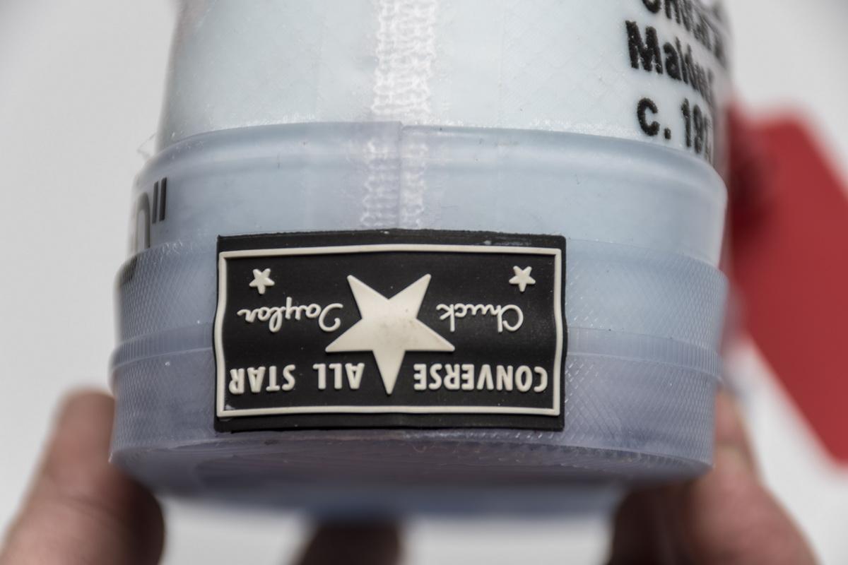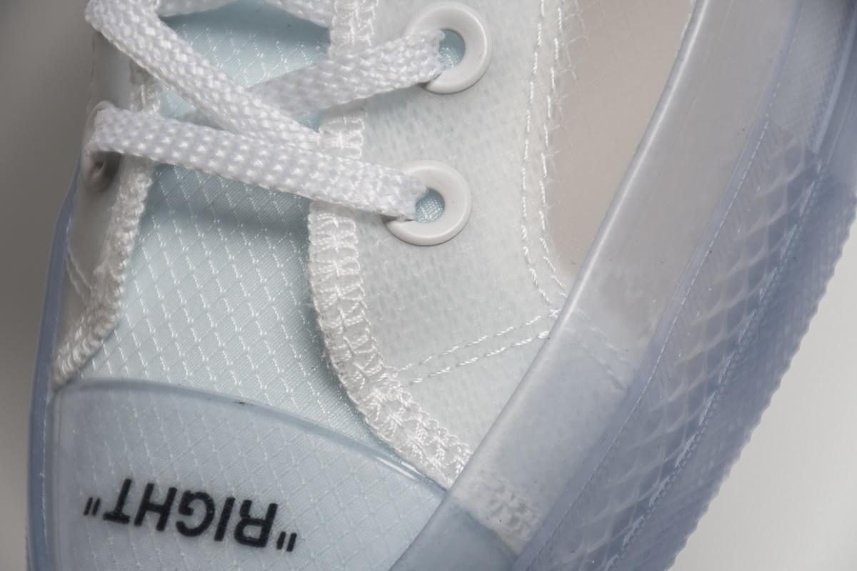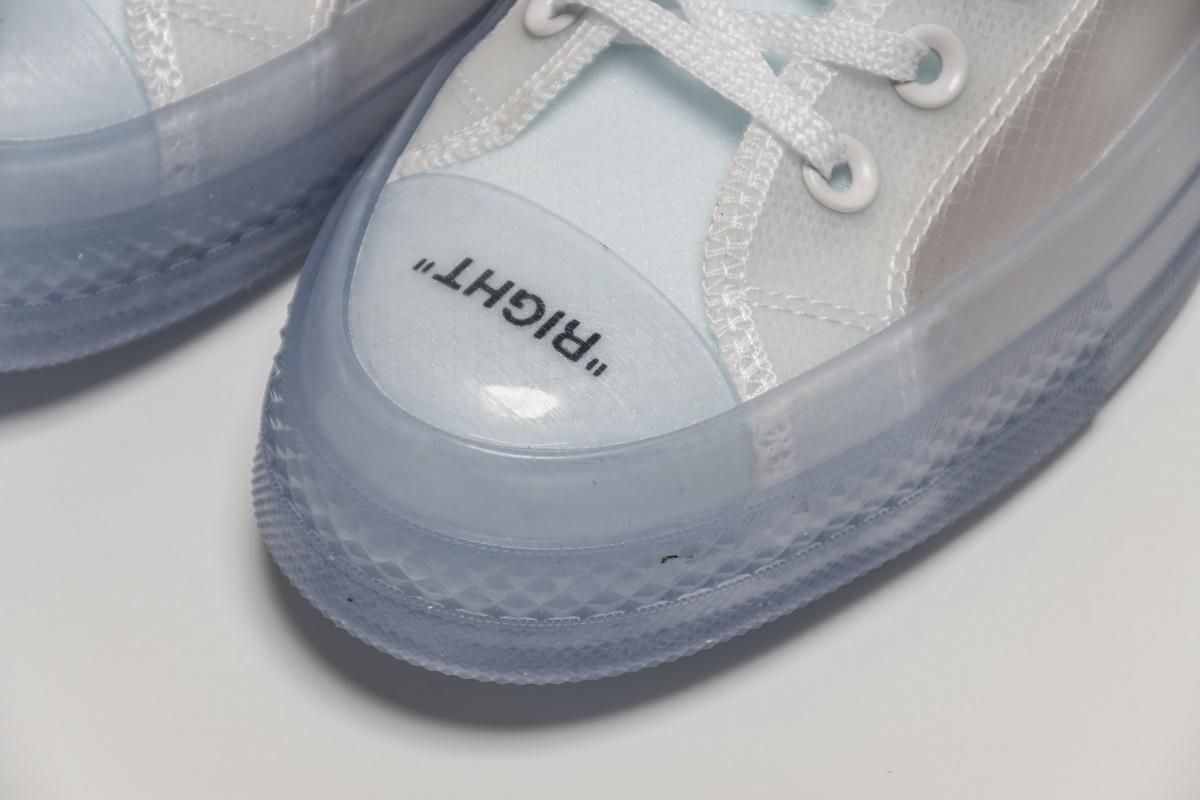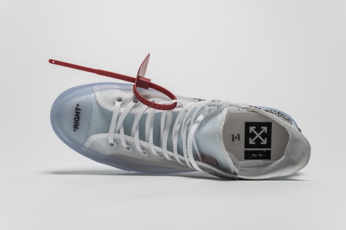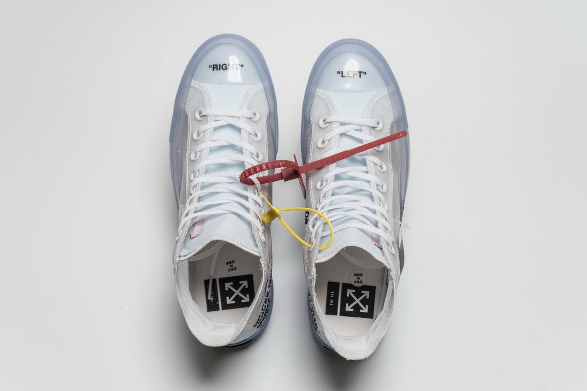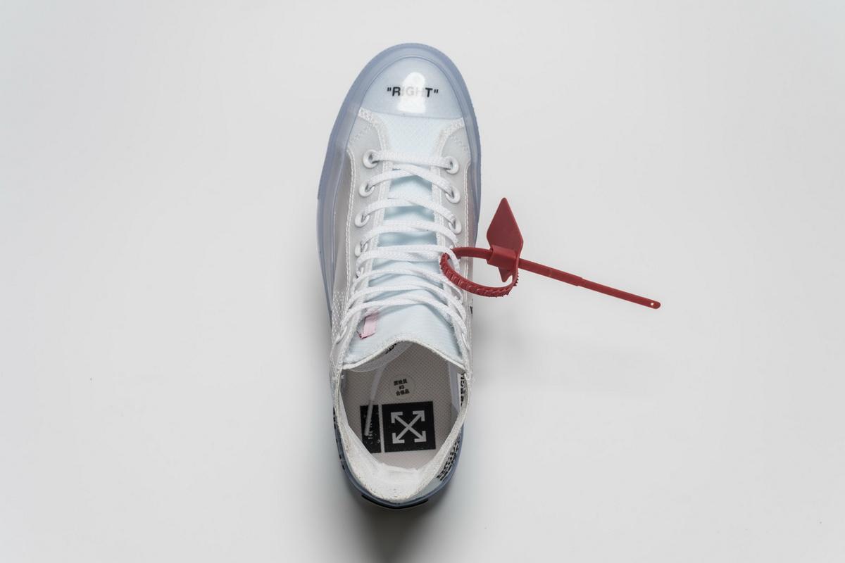 Последняя пара коллекции Вирджила Аблоха «The Ten», OFF-WHITE x Chuck Taylor All-Star 70, была выпущена в мае 2017 года как часть пака «GHOSTING». Благодаря полупрозрачному белому верху и голубому градиенту на подошве, обувь имеет жирный шрифт вдоль силуэта: «LEFT» и «RIGHT» на носках, «VULCANIZED» поверх межподошвы, «SHOELACES» на каждом шнурке. Не совсем белый штамп на каждой боковой панели. Красный зип-лок, закрепленный на шнурках, завершает образ.- Цвета: White/Cone-Ice Blue
