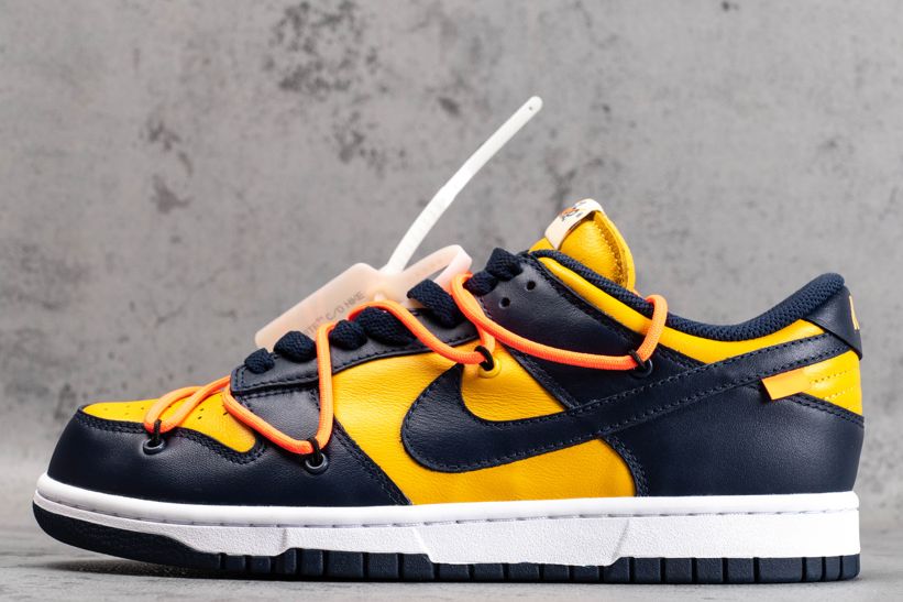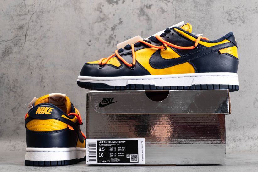 Прибыв в декабре 2019 года, OFF-WHITE и Nike продолжают свое творческое партнерство, пересматривая Dunk Low для капсулы из трех частей. Это издание в University Gold и темно-синей коже с фирменной этикеткой оранжевого флага на боковом Swoosh. Деконструированный стиль Вирджила Аблоха проявляется в форме вторичной шнуровки Flywire, увеличенного клеймения на медиальной части. Ознакомьтесь с подробными фотографиями и закажите эту расцветку OFF-WHITE x Dunk Low University Gold в розничных магазинах или в сервисе Slamdunk- Цвета: Midnight Navy/Varsity Maize