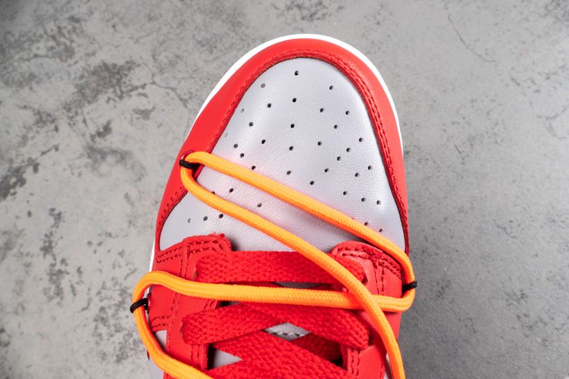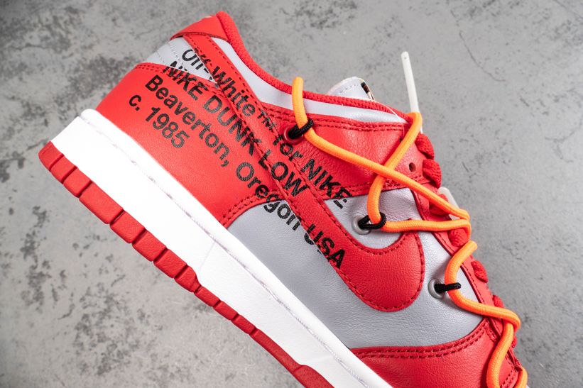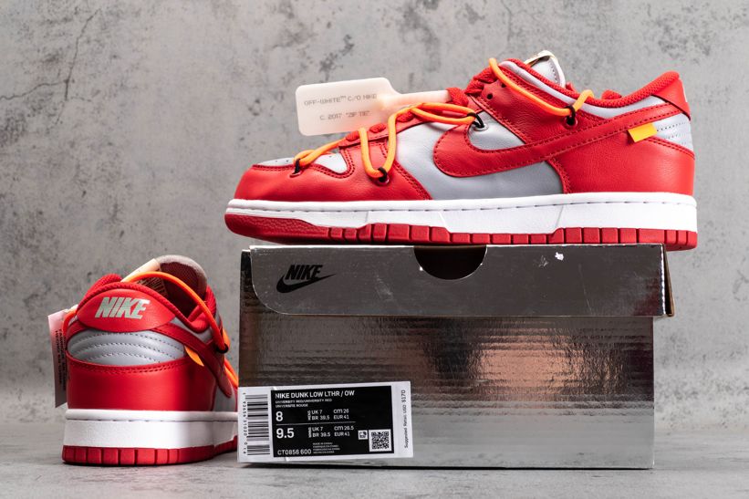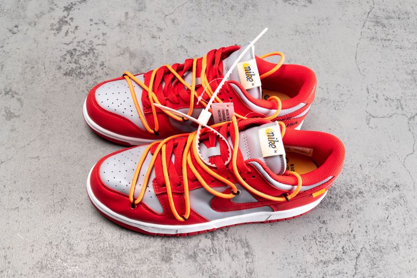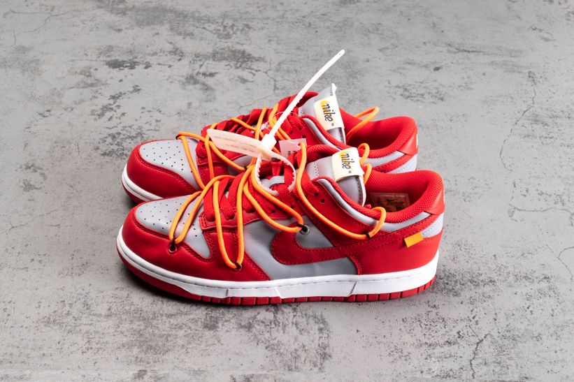 Коллекция OFF-WHITE x Nike Dunk Low затрагивает темы фрагментации и перестройки. Abloh выражает свой деконструктивистский фирменный стиль. Этот Dunk Low состоит из "волчьего серого" цвета кожаного верха с университетскими красными накладками. Уникальная вторичная система шнуровки, молнии и фирменный не совсем белый текст по бокам завершают дизайн. Эти кроссовки выпущены в декабре 2019 года за 170 долларов. Ознакомьтесь с подробными фотографиями и закажите эту расцветку OFF-WHITE x Dunk Low University Red в розничных магазинах или в сервисе Slamdunk- Цвета: White/University Red-White