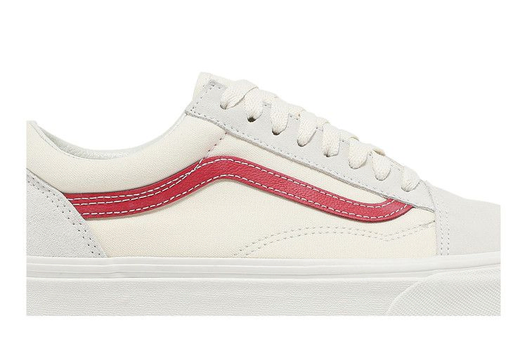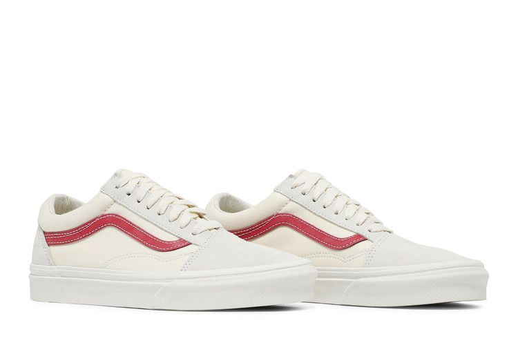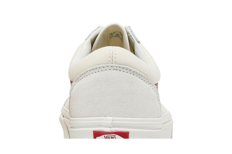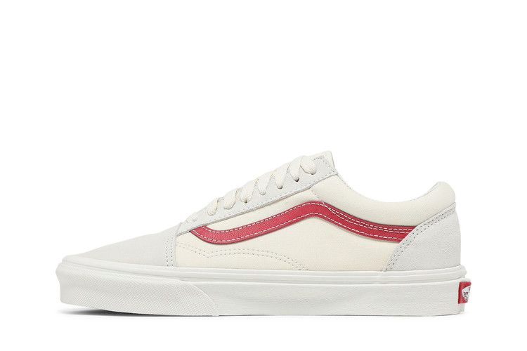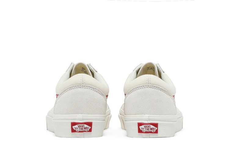Выполненные в винтажном стиле, Vans Old Skool выполнены в тонах Off-White из замши и канваса, а красная джазовая полоска на заднике перекликается с логотипом "Off the Wall" на пятке. Модель оснащена мягким пяточным воротником, а также кожаным носком для комфорта.