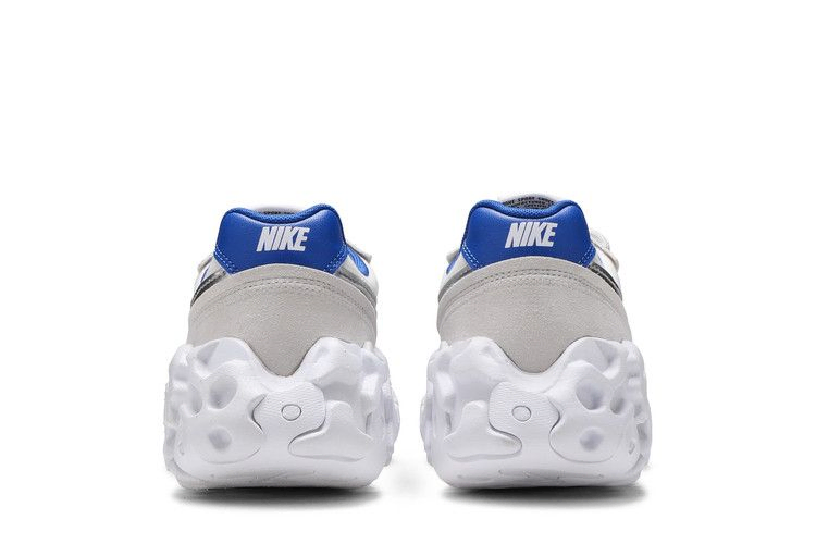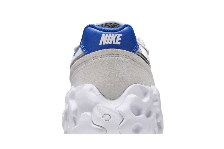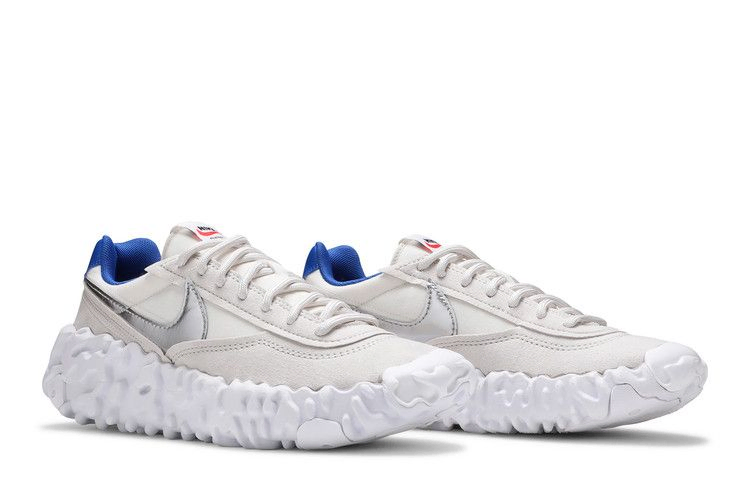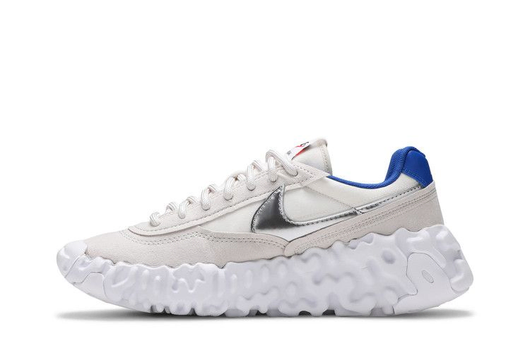 Nike Overbreak SP "Light Bone Rift Blue" - это преимущественно нейтральная расцветка бегунов, в которой верх и подошва кроссовок имеют дуэльный характер. Последняя выполнена в виде уникальной текстурированной межподошвы из пеноматериала React, позаимствованной у модели Nike OverReact. Верхняя часть кроссовок, вдохновленная ретро-стилем, сочетает в себе белую текстильную основу с тональными накладками из синтетической замши и серебристым металлическим логотипом Swoosh. Контрастные оттенки королевского синего цвета присутствуют на подкладке воротника и кожаном язычке пятки, украшенном вышитым знаком Nike.