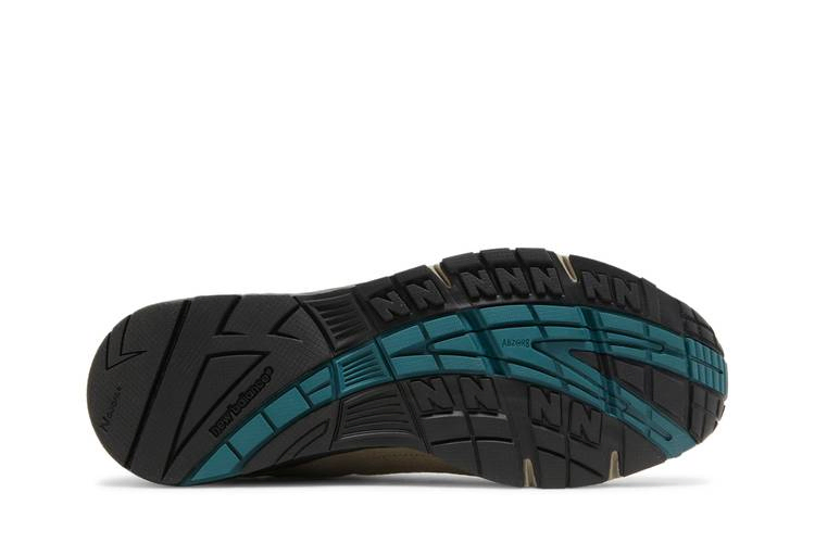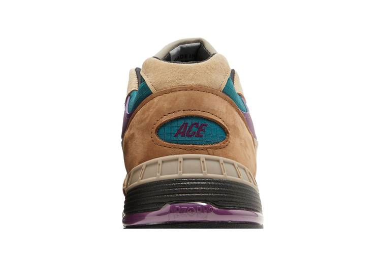 Модель Palace x New Balance 991 Made in England 'Teal' взята из коллекции обуви и одежды, объединившей трансконтинентальные бренды-партнеры. В этой паре используется верх из смешанных материалов, подчеркнутый основой из рипстопа тилового цвета с замшевым седлом светло-коричневого цвета. Фиолетовые кожаные детали на носке и воротнике дополнены фирменным логотипом "N", а бежевые замшевые накладки укрепляют носочную и пяточную части. В дополнение к двойному брендингу на язычке и стельке, "PALACE" прописана на пятке левой и правой части кроссовка. Легкая амортизация обеспечивается межподошвой ABZORB от New Balance, двухцветной отделкой и классической формой танкетки.