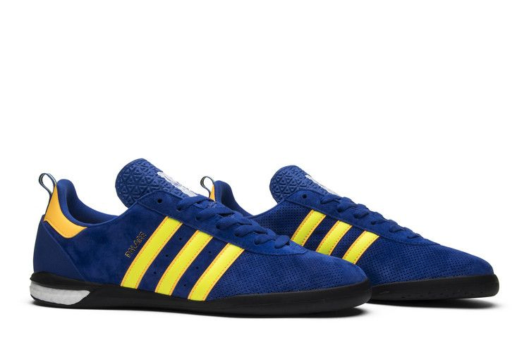 В 2017 году adidas и культовый британский скейтборд-бренд Palace предложили новый подход к классическим футбольным кроссовкам adidas для закрытых помещений. Модель Palace x Indoor имеет верх из микроперфорированной замши Bold Blue с текстурированной резиновой подошвой и брендингом Palace на язычке. Золотая фольга с логотипом Palace расположена рядом с зазубренными желтыми полосками, а золотистая - на пятке. В пятке видна амортизация Boost, а подошва выполнена из черной резины.