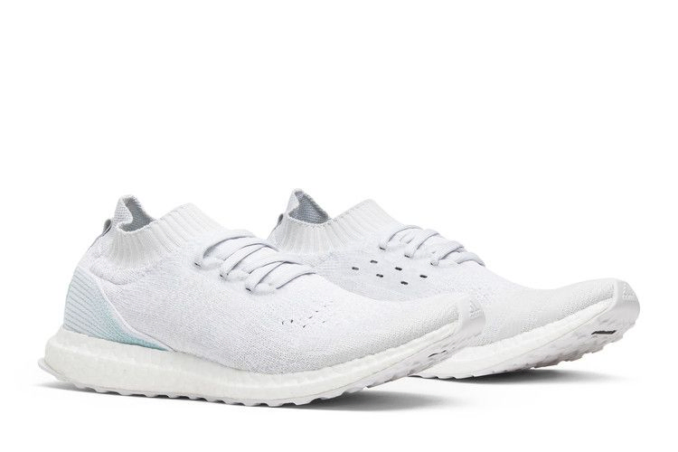 Первая совместная работа adidas с Parley for the Oceans была выпущена в ноябре 2016 года ограниченным тиражом в 7000 пар. Кроссовки Parley Oceans x Ultra Boost Uncaged 'Recycled' имеют бело-серый верх из материала Primeknit, созданного на 95% из океанического пластика. Модель также оснащена белой подошвой Boost Midsole, белой подошвой Continental и водно-голубой строчкой из переработанного пластика на пятке.