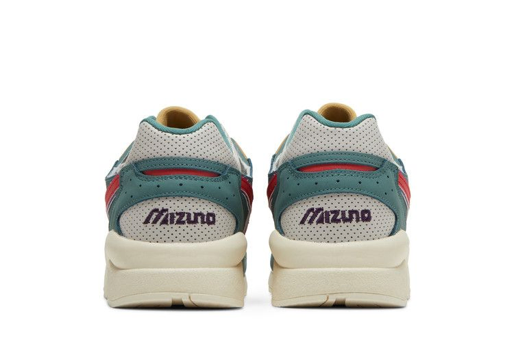 Patta x Mizuno Sky Medal 'Green Ivory' - третья совместная работа амстердамского ритейлера и японского бренда спортивной одежды. Верхняя часть ретро-кроссовок в стиле 90-х сочетает в себе белую перфорированную кожу с накладками из нубука тилового цвета. Логотип Mizuno Rundbird, выполненный в фиолетовом цвете, украшает четверть кроссовка из красной кожи. Логотип повторяется на язычке из кожи цвета загара, а также на вышитом знаке Patta. Белая промежуточная подошва из ЭВА обеспечивает легкую амортизацию и плавный ход.
