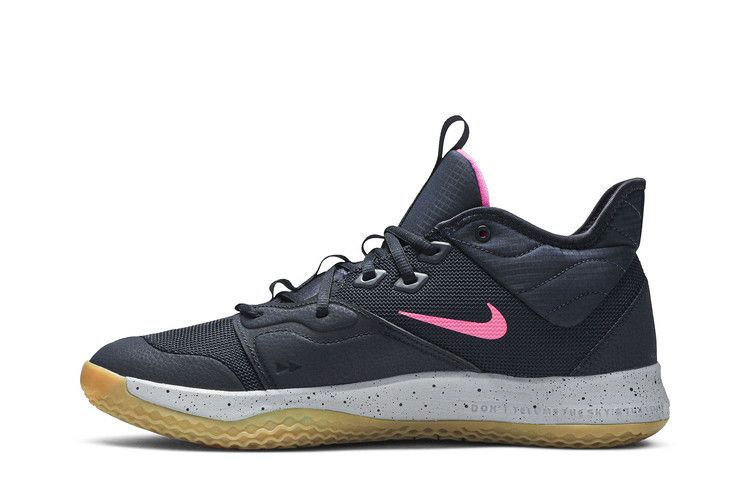 Это издание третьей фирменной модели Пола Джорджа, Nike PG 3 'ACG', представлено в цветовой гамме Obsidian, Pink Blast и Wolf Grey. Выпущенные в ноябре 2019 года, кроссовки имеют верх из сетки и синтетики, конструкцию 1/2 сапога и мягкий воротник. Фирменные детали расположены на язычке, а на межподошве из вспененного материала красуется знак Nike Swoosh. В носочной части кроссовок расположены подушечки Zoom Air, а подошва выполнена из светло-коричневой резины.