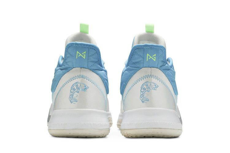 Модель PG 3 "Lure", разработанная Тони Хардманом и выпущенная в начале августа 2019 года, отдает дань уважения любви суперзвезды НБА Пола Джорджа к рыбалке в детальных фирменных элементах. Под логотипом игрока с петлей сзади контрастная строчка обрамляет вышитую рыбу, а аква-белая расцветка сетчатого верха навевает мысли о воде. Несмотря на снижение веса почти на унцию по сравнению с PG 2.5, в этих высокопроизводительных кроссовках Nike сохранилась система Zoom Air, обеспечивающая эффективную амортизацию.