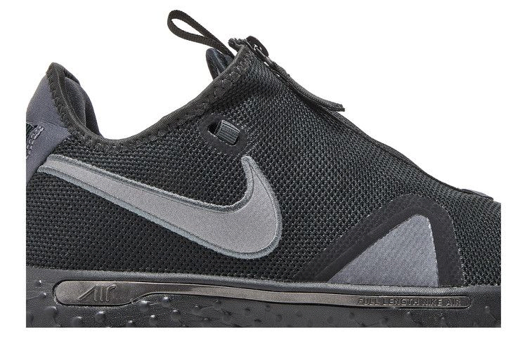 Nike PG 4 "Black Metallic Dark Grey" - четвертые фирменные кроссовки Пола Джорджа, выполненные в монохроматическом стиле. Однотонная расцветка кроссовок дополняет обтекаемую конструкцию, которая закрывает верхнюю часть на молнии, изготовленную из двух различных видов сетки для вентилируемого комфорта. Чувствительная амортизация обеспечивается полноразмерной стелькой Nike Air, которая видна через вырезы на резиновой подошве.