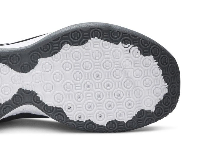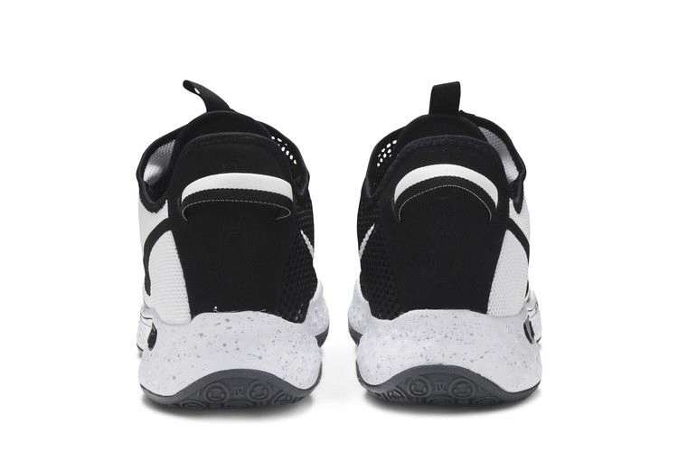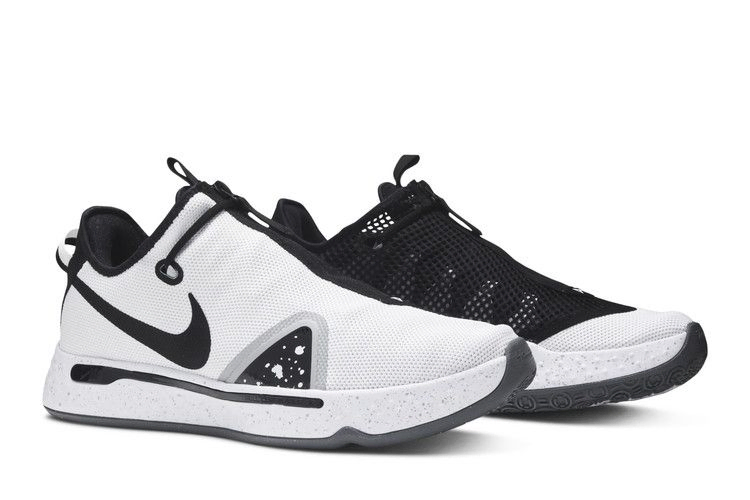PG 4 "Oreo" соответствуют неофициальному названию кроссовок, выполненному в черно-белой цветовой гамме. Сетчатая накладка на молнии, покрывающая верхнюю часть фирменных кроссовок Пола Джорджа, имеет раздельное цветовое решение: сплошной белый цвет на боковой стороне и полупрозрачный черный на противоположной стороне. Промежуточная подошва из пеноматериала с крапинками опирается на черную резиновую подошву с круговым рисунком, обеспечивающим разнонаправленное сцепление с твердым покрытием.