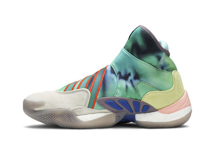 Модель Pharrell x adidas Crazy BYW 0 To 60 STMT 'Reflexology', выпущенная в рамках более масштабного сотрудничества с креативным гиф-фаворитом, демонстрирует дизайн в стиле tie-dye на баскетбольном силуэте. Верх из эластичной сетки заменяет традиционные шнурки на молнию и ремешок на щиколотке, украшенный логотипом Pharrell 'Hu'. Гибкая амортизация обеспечивается подошвой adidas podular Boost You Wear, а подошва из полупрозрачной резины поддерживает стопу.
