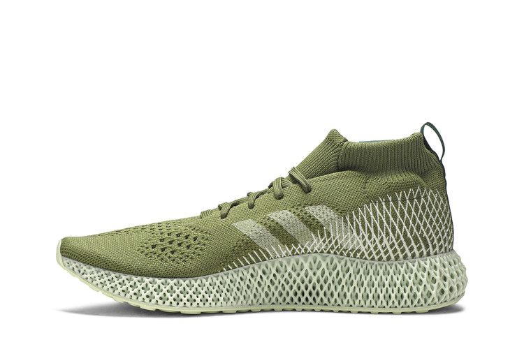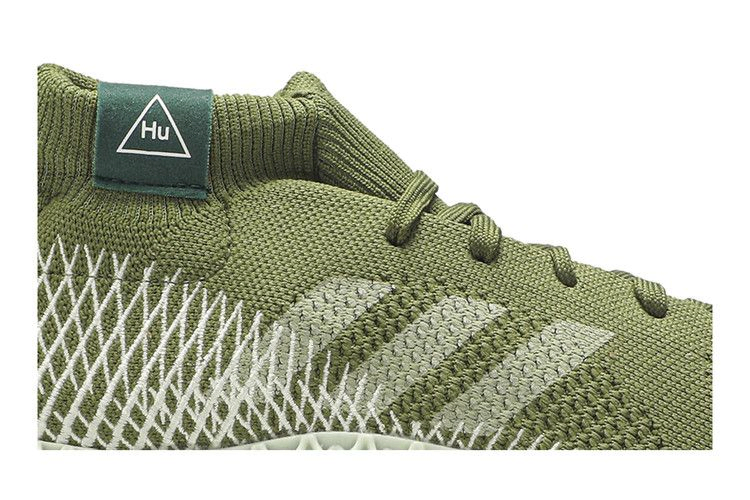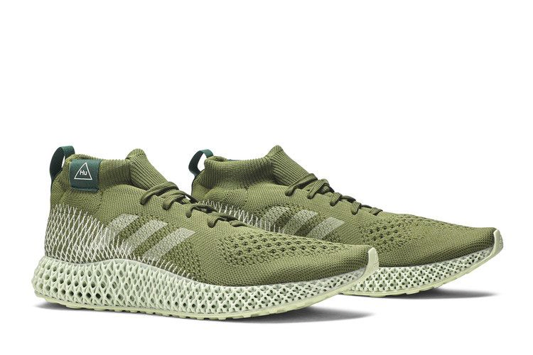 В модели Pharrell Williams x 4D Runner 'Olive', разработанной в сотрудничестве с многогранным творческим человеком, использована инновационная 4D-подошва adidas, которая представляет собой решетчатую структуру, созданную цифровым способом с помощью комбинации света, кислорода и жидкой смолы. Верхняя часть кроссовок выполнена из дышащего материала Primeknit оливково-зеленого оттенка и украшена логотипом Pharrell 'Hu' на воротнике, напоминающем носок.