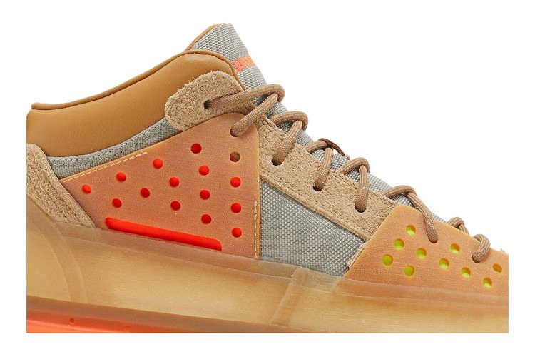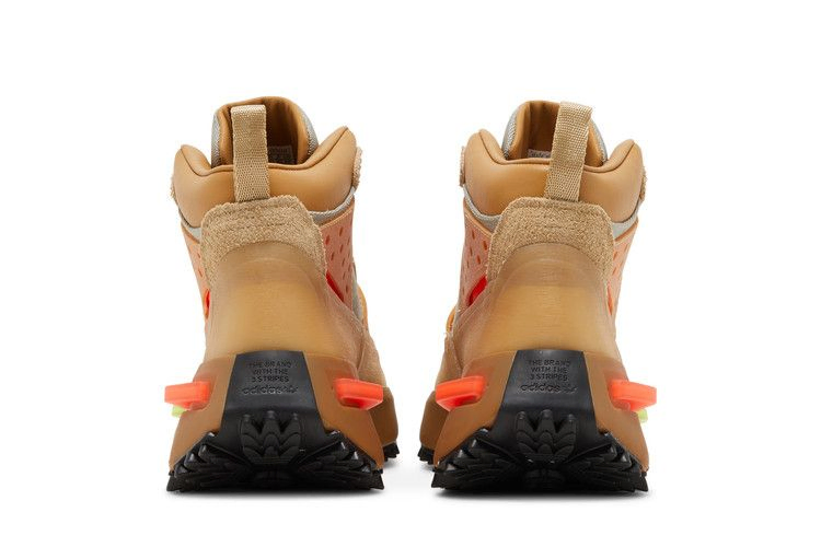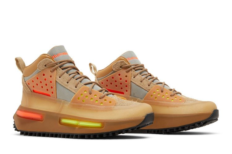 Pharrell x adidas Hu NMD_S1 Ryat 'Cardboard' привносит грубую уличную эстетику в повседневный силуэт, созданный для повседневной носки. Основанная на модели NMD S1 и созданная с помощью серии 3D-прототипов, эта модель имеет верх из смешанных материалов, сочетающих в себе загорелую кожу, серую баллистическую сетку и бежевую ворсистую замшу. Брендинг ограничен надписью "Humanrace", вышитой на язычке оранжевым шрифтом. Полупрозрачный TPU использован на брызговике и межподошве, последняя обернута вокруг полноразмерной амортизации Boost и акцентирована яркими цветными литыми деталями, вдохновленными фирменными заглушками NMD. Подошва из черной резины с рисунком в виде рельефных трилистников adidas.