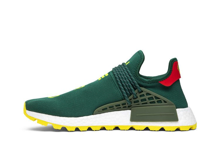 Ограниченная всего 200 парами, эта модель Pharrell x N.E.R.D. x NMD Human Race Trail была выпущена эксклюзивно во флагманском магазине Billionaire Boys Club в Нью-Йорке в сентябре 2018 года. Модель выполнена из зеленого трикотажа и украшена надписью N.E.R.D., идущей от язычка до носка и выполненной в контрастном желтом цвете. Оливково-зеленый цвет украшает структурную клетку и заглушки из ЭВА, а на красном кожаном язычке пятки красуется логотип мозга N.E.R.D.