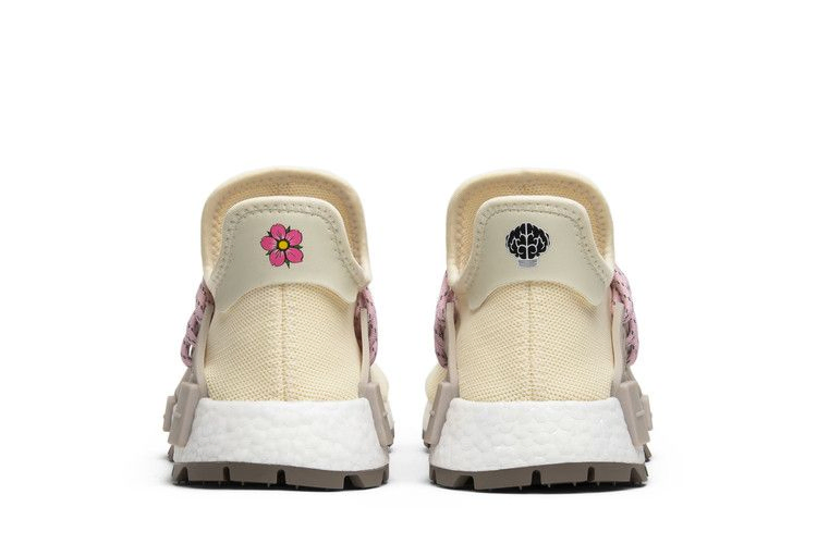 Выпущенные как японский эксклюзив, Pharrell x N.E.R.D. x NMD Human Race Trail 'Cream' имеют сдержанную эстетику. Мягкая цветовая палитра дополнена белой вышивкой "N.E.R.D." на правом ботинке и китайскими иероглифами на левом. Несочетаемое продолжается на каждом язычке пятки, где слева изображен розовый цветок, а справа - логотип N.E.R.D..