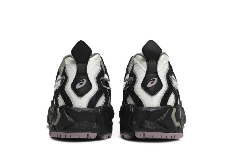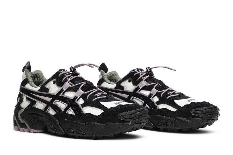 Модель Pleasures x ASICS Gel Nandi 'Cream Graphite', созданная в сотрудничестве с брендом уличной одежды из Лос-Анджелеса, представляет собой реконструированные кроссовки начала 2000-х годов, вдохновленные темой музыкальных исследований в лесу. Система шнуровки с завязками фиксирует верх из нейлона рипстоп кремового цвета с черными замшевыми накладками. На мыске выбита надпись "Pleasures". Черные тигровые полоски окантованы приглушенным розовым оттенком, а стеганая текстильная подкладка выполнена в оливково-зеленом цвете. Подошва из резины с шипами обеспечивает надежное сцепление с поверхностью.