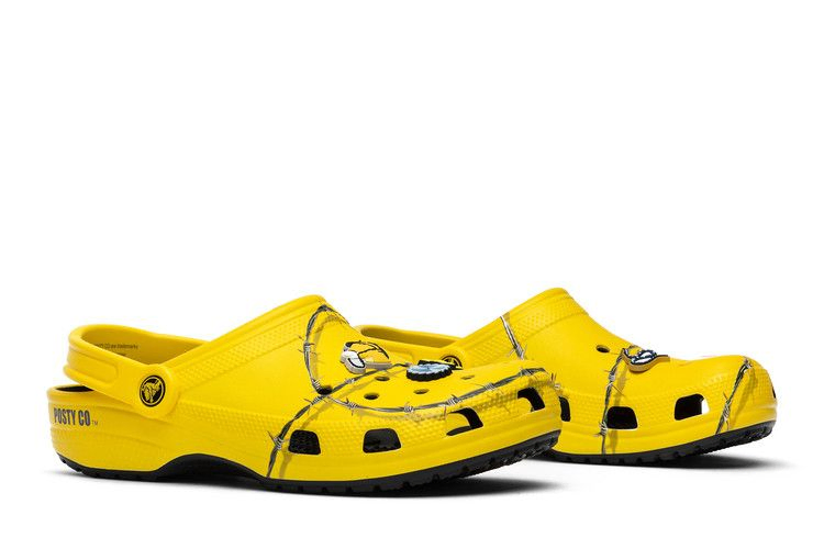В декабре 2018 года Crocs пригласили Поста Мэлоуна нанести свой отпечаток на модель Classic Clog. Результатом стала специальная версия "Barbed Wire", в которой резиновый верх слипонов окрашен в желтый цвет и подчеркнут графикой колючей проволоки и шестью Jibbitz на тему Post Malone, которые можно прикрепить к перфорации обуви.