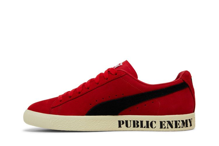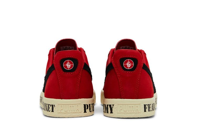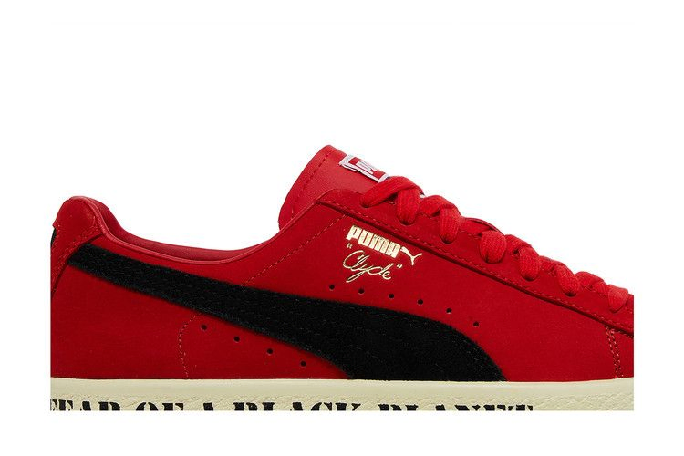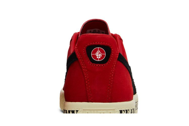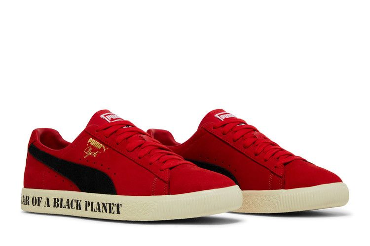 Модель Public Enemy x PUMA Clyde 'Fear of a Black Planet' посвящена знаменательному третьему альбому новаторской рэп-группы. Красный замшевый верх модели украшен черной полосой Formstrip и золотистым брендингом PUMA Clyde на задней панели. Надпись "Fear of a Black Planet" нанесена черным шрифтом на боковую часть межподошвы Off-White, а фирменный логотип Public Enemy в виде перекрестья украшает пяточный язычок, тканый язычок и носок.