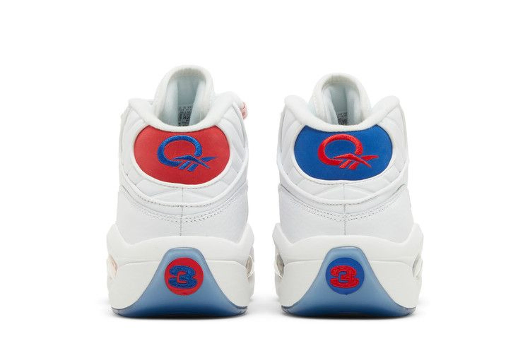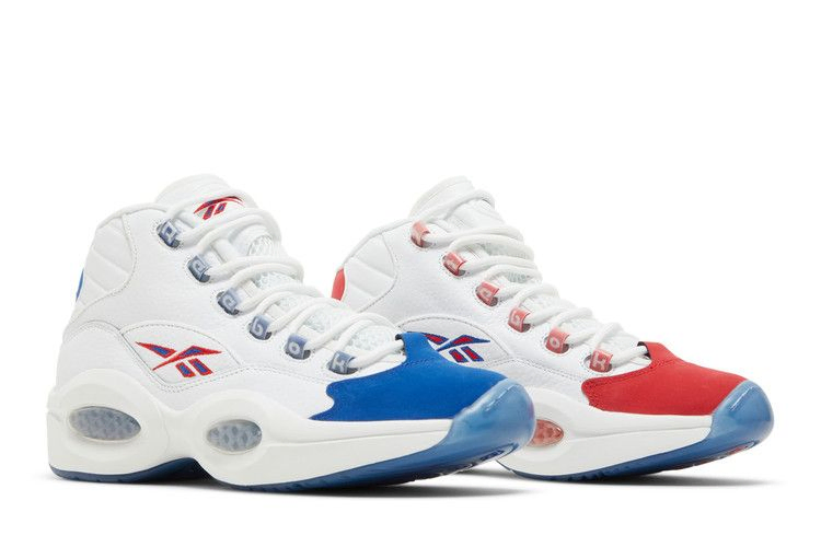 Модель Reebok Question Mid 'Double Cross' - это возвращение к сезону новичка Аллена Айверсона, выступавшего за команду Philadelphia 76ers. Белые кожаные верха этой модели, представленной в октябре 2019 года, имеют красную крышку носка из нубука на левом ботинке и синюю - на правом. Асимметричная схема распространяется на брендинг и фирменные детали. Промежуточная подошва EVA с гексалитовой подушкой и полупрозрачная резиновая подошва повторяют оттенки.