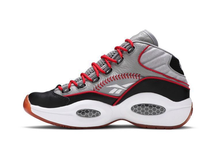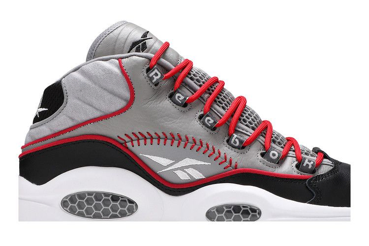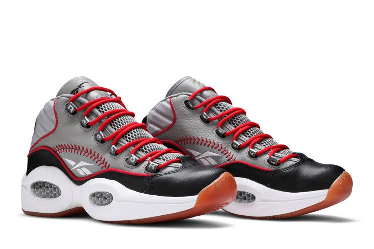 Модель Question Mid от Reebok появилась в 1996 году как первая фирменная обувь Аллена Айверсона. Кроссовки оснащены мыском и системой шнуровки ghillie, а также характерными окнами Hexalite в межподошве. Расцветка "Practice" вдохновлена знаменитой пресс-конференцией, на которой Айверсон, разглагольствуя о тренировках, повторил это слово более 20 раз. Бейсбольные швы на кроссовке взяты непосредственно с кепки Red Sox, которую Айверсон носил в тот день.