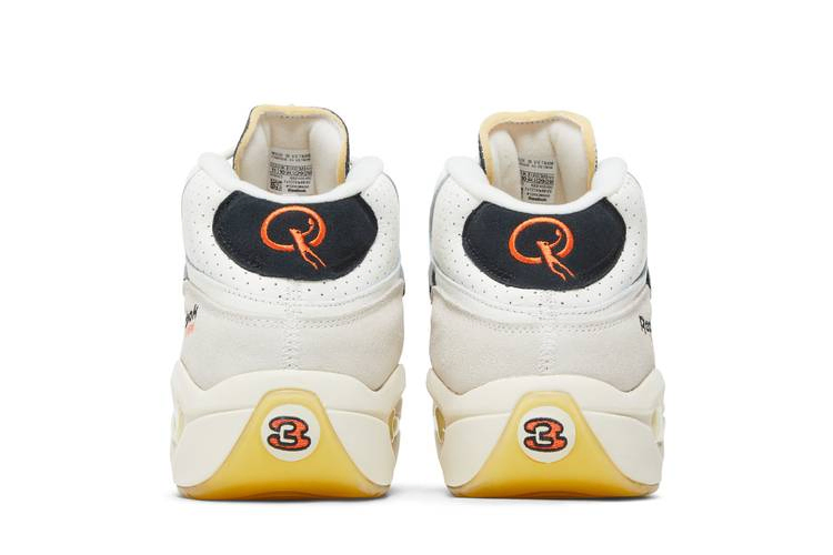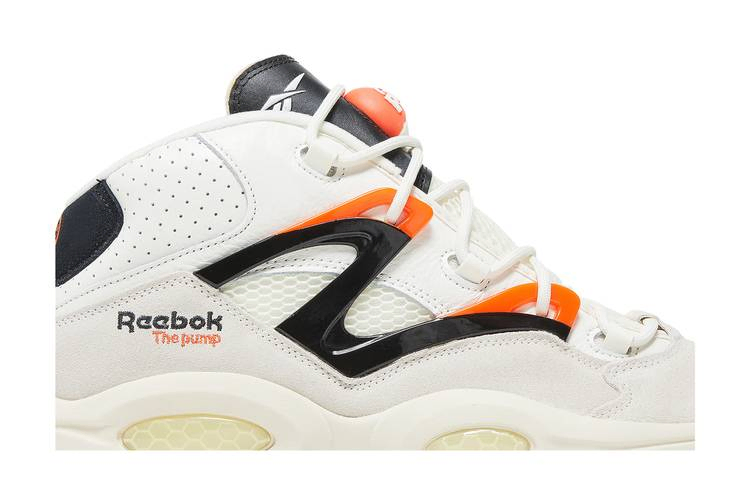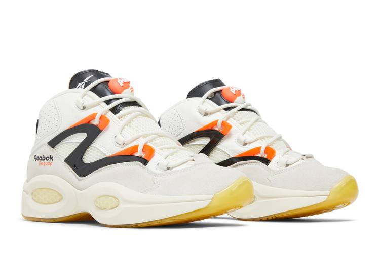 Reebok Question Pump 'Pump Universe' представляет собой гибридный силуэт, в котором сочетаются элементы дебютной фирменной обуви Аллена Айверсона и Pump Omni Zone 2. Верхняя часть выполнена из белой кожи с воздушными сетчатыми панелями, клетка из TPU черно-оранжевого цвета и замшевый брызговик бледно-серого цвета. Знаковая кнопка Reebok Pump расположена на язычке из вспененного материала, а на пятке изображен модифицированный логотип Question с силуэтом Ди Брауна, исполняющего свой печально известный данк 1991 года. От Reebok Question осталась характерная межподошва с видимой амортизацией Hexalite внутри и полупрозрачной резиновой подошвой под ногами.