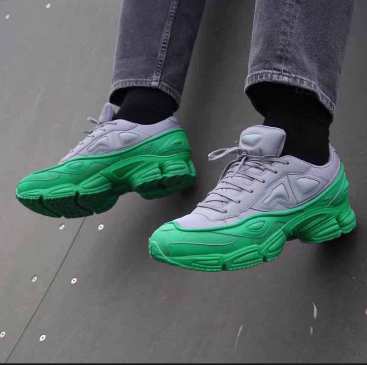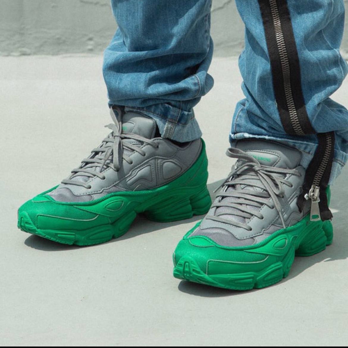 Кроссовки Raf Simons x adidas Ozweego 'Green' обновляют совместный дизайн Рафа Симонса, предлагая зелено-серый цвет и матовую отделку. Двухцветный кожаный верх с эффектом "погружения" - серый сверху, зеленый снизу - дополнен текстильной подкладкой, сетчатой подкладкой, амортизирующим носком и тисненым брендингом "Raf Simons" на язычке. Модель дополнена промежуточной подошвой EVA для дополнительного комфорта, покрытой тональным зеленым оттенком.- Цвета: Green/Grey/Grey