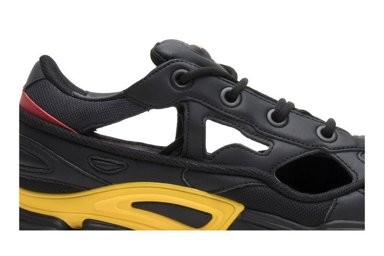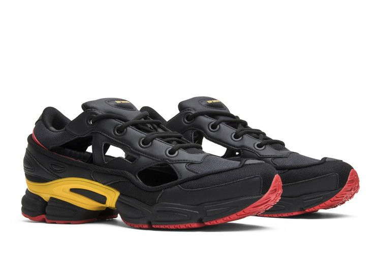 Раф Симонс берет свой культовый силуэт Ozweego Replicant и переделывает его в деконструированном дизайне. Расцветка обуви - дань уважения родному городу Симонса, Бельгии, а обычная конструкция из сетки и кожи выдолблена на боковых панелях, создавая отверстие. В индивидуальной коробке и упаковке к обуви прилагается несколько пар носков с геометрическим принтом, которые можно увидеть через вырезанные панели, что позволяет владельцу менять внешний вид силуэта.