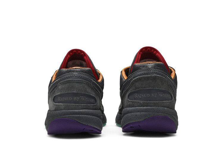 Созданные в сотрудничестве с канадским брендом уличной одежды, Raised By Wolves x AYA 'Asphalt Jungle' используют ранее снятые с производства кроссовки Saucony 90-х годов. Дизайн черпает вдохновение в культуре скейтбординга того же десятилетия, подчеркивая темно-серый цвет верха, созданного почти из дюжины различных материалов, включая сетку, рипстоп и замшу. Контрастные цвета присутствуют на подкладке воротника и внутреннем язычке, где имеется потайной карман.