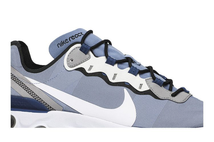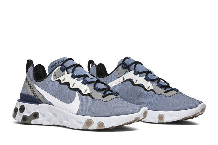 Кроссовки Nike React Element 55 "Indigo Fog", выпущенные в мае 2019 года, созданы по образцу ретро- и современных беговых кроссовок Nike. Кроссовки из текстиля и синтетики заимствуют дизайнерские линии у бегуна Nike Internationalist. Верхняя часть кроссовок украшена светоотражающими акцентами и проклеенными швами. В сочетании с инновационной амортизацией React целевые резиновые вставки на подошве поднимаются к межподошве, обеспечивая оптимальное сцепление с поверхностью.