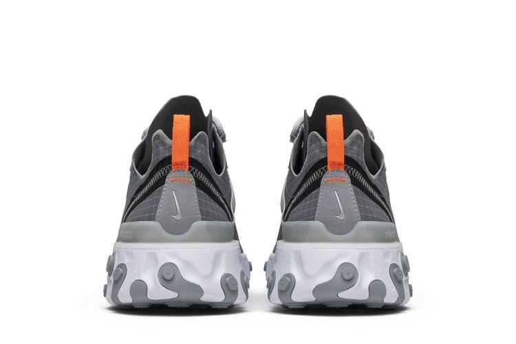 Модель Nike React Element 55 повторяет дизайн своего предшественника 87-го года с уважением к наследию и современным технологиям. Выпущенная в январе 2019 года модель "Grid - Cool Grey" обновляет внешний вид с узором 1990-х годов на нейлоновом верхе. Металлические свуши, элементы Hyper Crimson и светоотражающие детали создают ощущение утилитарности. Промежуточная подошва из пеноматериала React и резиновые подошвы повышают износостойкость.