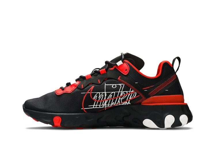 Nike React Element 55 "Script Swoosh" - новейшая модель Nike из четырех частей пакета, посвященного истории логотипа, который вышел 10 августа 2019 года. Это также единственная модель, выполненная в темном цвете, в отличие от белых шаблонов остального трио. Вдохновленные ранними работами графического художника Nike Кэролин Дэвидсон, эти кроссовки демонстрируют ее первый набросок логотипа Swoosh в аутентичных графических деталях. Под ногами - пеноматериал Nike React, обеспечивающий отзывчивую амортизацию.