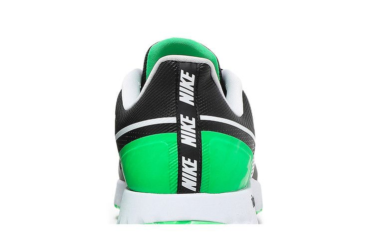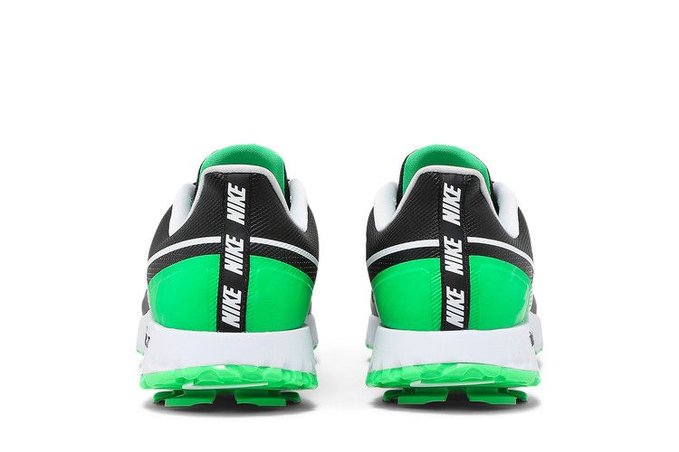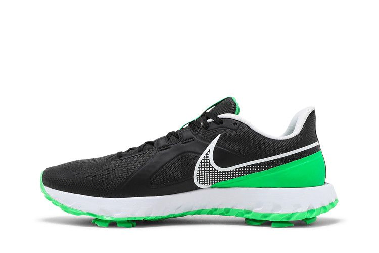 Легкие кроссовки для гольфа Nike React Infinity Pro 'Black Green Spark', созданные с учетом комфорта и сцепления, используют дышащий текстильный верх, покрытый водонепроницаемым материалом NIKESKIN. Накладка в средней части стопы и внутренняя стойка пятки обеспечивают повышенную устойчивость, а промежуточная подошва Nike React обеспечивает отзывчивую амортизацию. В подошве используются поршневые шипы и сцепной рисунок, основанный на данных, чтобы стопа оставалась устойчивой во время движения.