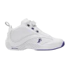 Выпуск 2021 года Reebok Answer 4 "Step Over" возвращает известную расцветку четвертых фирменных кроссовок Аллена Айверсона, которые спортсмен надел, когда он перешагнул через Тайронна Лю из "Лейкерс" после того, как забил бросок в финале НБА 2001 года. Верх из белой и черной кожи застегивается на ремешок с крючком и петлей, а молния скрывает шнурки, придавая им обтекаемый вид. Кожаный язычок на пятке обеспечивает легкое надевание и снимание. Кроссовки опираются на промежуточную подошву из вспененного материала DMX, а под ногами поддерживается резиновая подошва с покрытием "елочка".- Модель: Кроссовки Reebok Answer 4