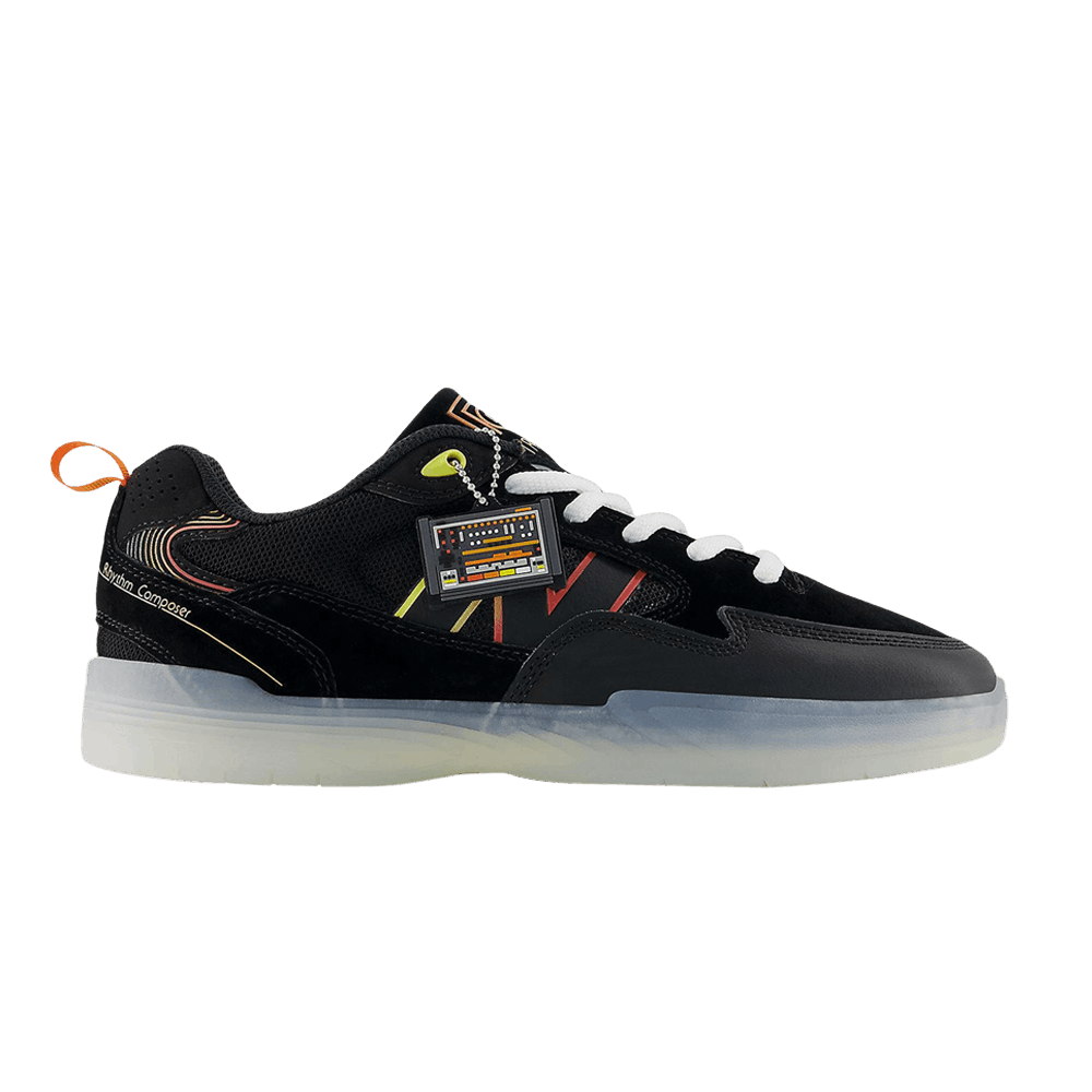 Roland x Tiago Lemos x New Balance Numeric 808 Lite 'Rhythm Composer' вдохновлены культовой аналоговой барабанной машиной и имеют черный сетчатый верх с тональными накладками из нубука и кожи. Обрезанный черный логотип 'N' с градиентной красной и неоново-желтой окантовкой украшает четверть панели. Язычок украшает бирка "TR-808", а на носочной части - тройной брендинг. Модель установлена на полупрозрачную резиновую подошву.