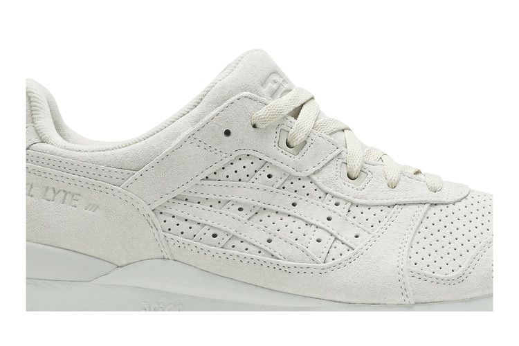 Модель Ronnie Fieg x ASICS Gel Lyte 3 OG "Waffle", выпущенная в рамках коллекции из 30 предметов, получившей название "The Palette", демонстрирует монохромную кремовую отделку верха, отражающую один из самых часто используемых цветов в истории Kith. Как и 29 пар, эта модель ограничена 300 экземплярами и имеет замшу из свиной кожи на тонкой контрастной тональной подошве. На левом раздвоенном язычке выбита надпись "30", а на противоположном язычке - фирменный шрифт ASICS "Fieg".