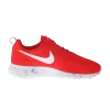 Верх кроссовок Nike Rosherun выполнен из смешанных материалов: текстильная четверть и воздухопроницаемая сетка на мыске и заднике, выполненные в красном цвете Challenge Red. Однородная расцветка верха контрастирует с белой подошвой, украшенной беспорядочными синими и красными вихрями, что создает уникальный мраморный эффект, распространяющийся и на вафельную подошву. Пяточная петля украшена уникальным двухцветным рисунком, который проходит по всей длине красного холщового материала.