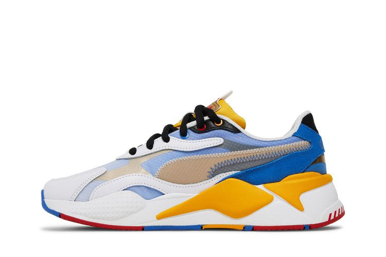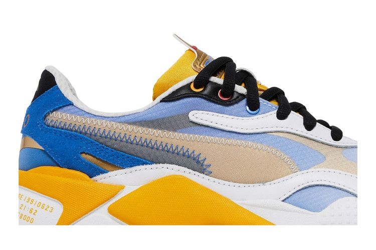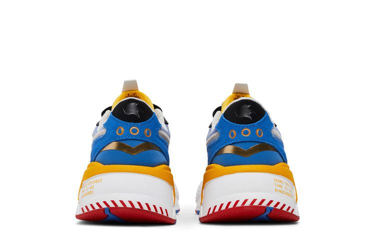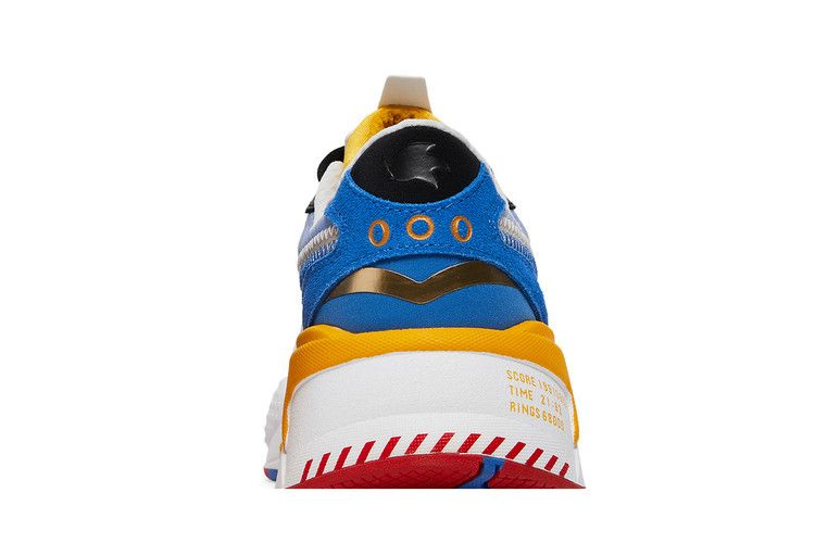 Модель PUMA RS-X3 "Golden Rod" создана в сотрудничестве с Sega, брендом видеоигр, чья франшиза Sonic the Hedgehog послужила вдохновением для дизайна кроссовок. Уникальные детали включают графику золотых колец на пятке, надпись High Score на промежуточной подошве и брендинг PUMA x SONIC RS-X на металлическом золотом язычке. Верхняя часть кроссовок выполнена из текстиля синего цвета, покрытого прозрачной синтетической пленкой, с накладками из белой кожи и синей замши.