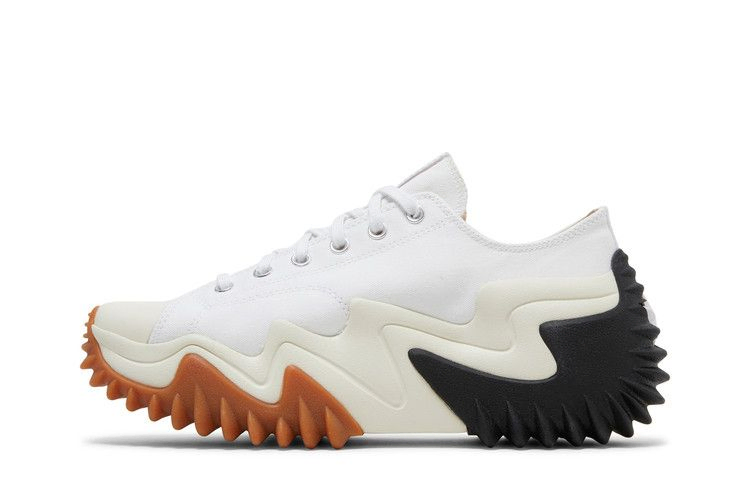 Модель Converse Run Star Motion Platform Low 'White Egret' демонстрирует классический стиль Чака Тейлора с преувеличенно привлекательной отделкой. Верхняя часть изготовлена из белого органического холста с тональной строчкой, хромированными люверсами и фирменным резиновым носком. Носок CX работает в тандеме с платформенной подошвой из пеноматериала CX с волнистыми линиями и тисненой полосой. Резиновая подошва с агрессивным рисунком в виде зубцов для усиления сцепления с поверхностью.