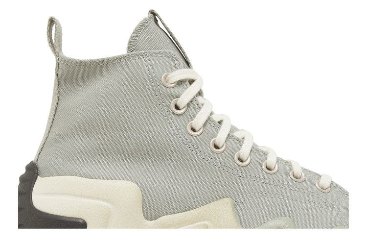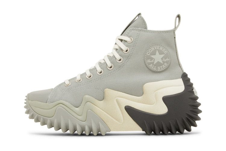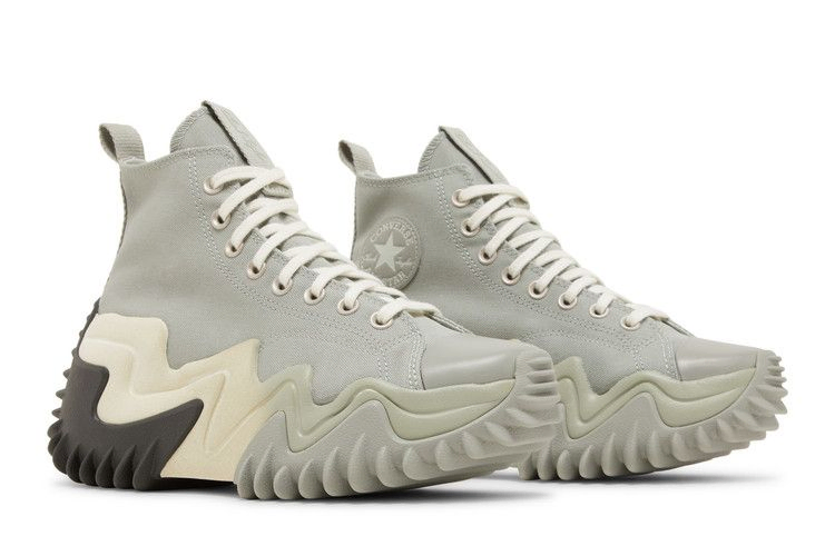 Модель Converse Run Star Motion Platform Ombre "Slate Sage Light Silver" представляет собой культовую модель Chuck Taylor с преувеличенными деталями для создания модного образа. Верх выполнен из серого органического холста и украшен тональной резиновой накладкой на носке и круглой нашивкой All Star на медиальной лодыжке. Верхняя часть установлена на платформу CX с пенополиуретановой подошвой, на которой волнистые линии сочетаются с цветовым решением в стиле омбре. Резиновая подошва из двух частей - серой и черной - украшена агрессивным рисунком в виде зубцов, который тянется вверх по носку и пятке.