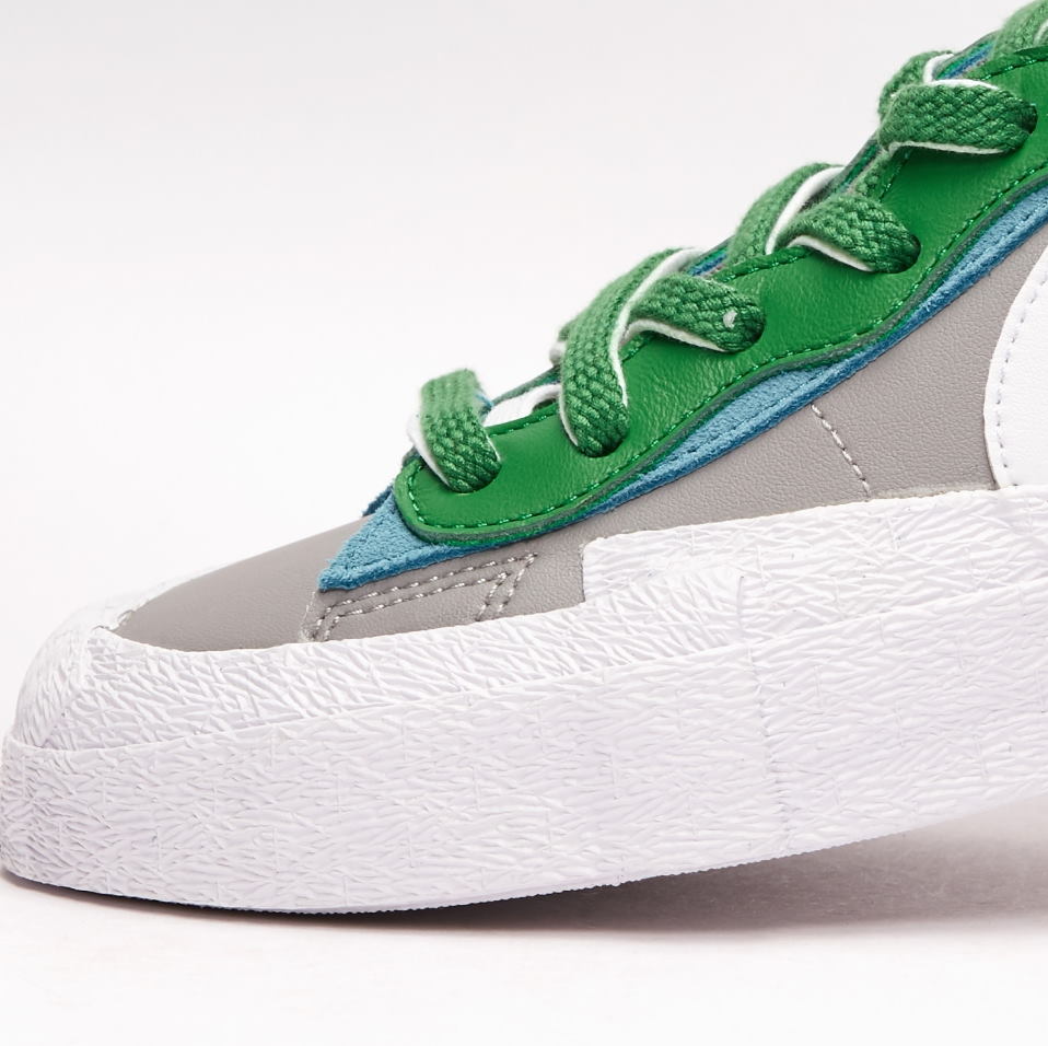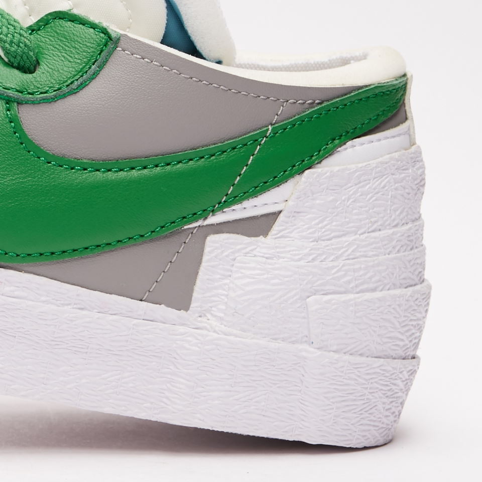 Модель Sacai x Nike Blazer Low Classic Green отличается кожаным верхом Medium Grey с классическими зелеными, бирюзовыми и белыми накладками. Завершают дизайн сдвоенный язычок и сложенная белая подошва, собирающаяся вокруг пятки.- Цвета: Medium Grey/Classic Green/White